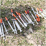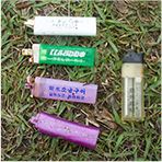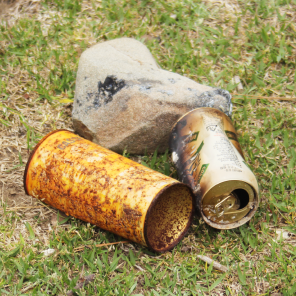 スプレー缶や使い捨てライター、自動車やバイクの潤滑剤として使用されるグリスの容器やオイル缶、注射器、蛍光灯、電球などが漂着しています。スプレー缶は、中身が完全になくなっているものは穴をあけて処理できますが、中身が残っているものについては引火や爆発(太陽熱で内圧が高くなるため)の危険性があるため、処理が困難です。その他の危険ごみについても取り扱いに注意が必要です。